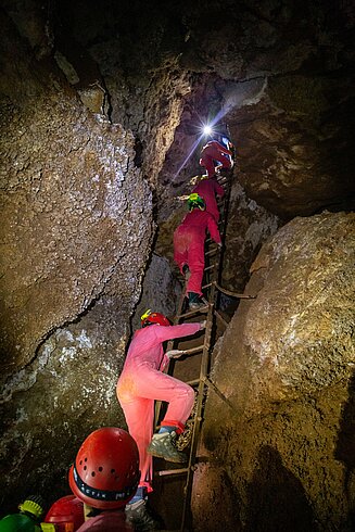 73m tiefe aktive Thermalhöhle mit reichen Kleinsinterformen. Thermalquelle (+15°) am tiefsten Punkt. Abenteuerführung. Eigene, schmutzunempfindliche Wechselkleidung mitbringen! Helme und Gummistiefel vorhanden. Körperliche Fitness erforderlich!