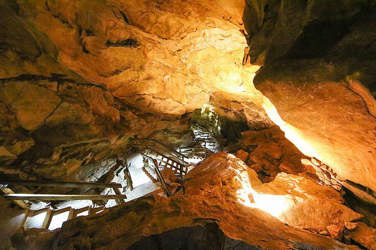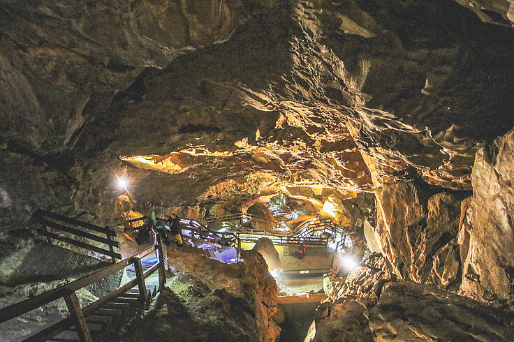 In dem für Besucher gut erschlossenen Schauhöhlenbereich erforscht man auf gut begehbaren Treppen 700 m mit 70 m Höhendifferenz. Festes Schuhwerk und warme Kleidung, Temperatur zwischen 4° und 6° C.